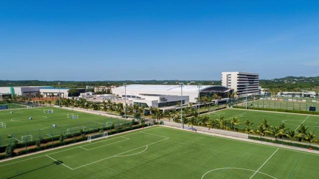 在足球方面,为备战2022杭州亚运会,此次国奥U23男子足球队也选择了环境优美、设施齐全的海口观澜湖作为备战集训之地。海口观澜湖国际足球训练基地规划建设对标世界一流的足球训练基地及足球俱乐部的训练基地标准,包括:30块足球训练场、可容纳861人的运动员酒店、可容纳650人的球员餐厅、体能训练中心、医疗康复中心、室内游泳馆、综合办公楼、大型更衣区以及相关辅助配套设施、生态园林景观等,适合职业球队进行封闭冬训。